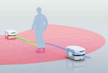 Robot Omron di động có thể dừng khẩn cấp đối với chướng ngại đường đi nằm ngoài kế hoạch